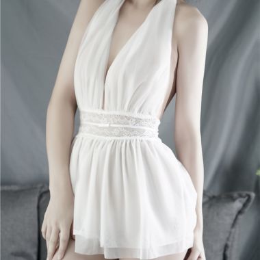 (情趣内衣)羞羞宝贝深V性感挂脖睡裙(白)